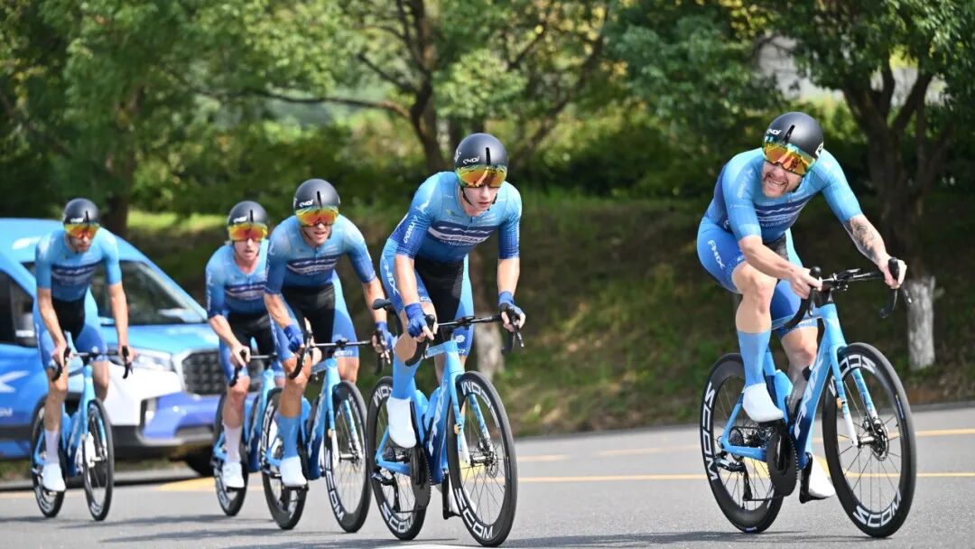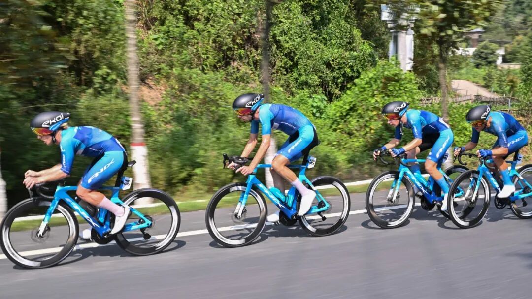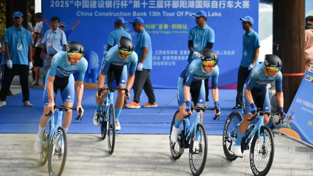 本赛段取团队前四名选手成绩,这意味着车队必须确保至少有4名队员在一起,如果有人掉队,成绩会大受影响。它完美体现了 “不抛弃、不放弃” 的团队精神——快不是唯一目标,一起快才是。而这类比赛的最大挑战来自战术沟通、节奏分配、流畅轮换、风阻影响以及体能极限等多方面因素。著名的团体计时赛有世界锦标赛、环法、环西和环意等世界级重要环赛。而本次环鄱赛,作为UCI赛事体系中重要一站,同样设有单站团体计时赛。