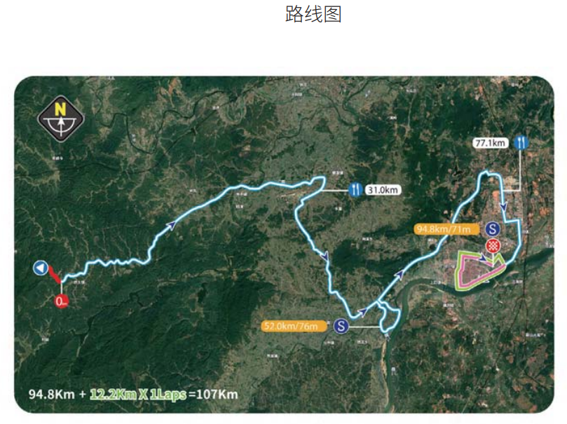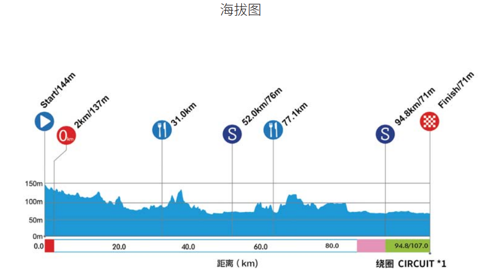 本赛段为平路冲此赛段,全程107公里,设有两个途中冲刺点。